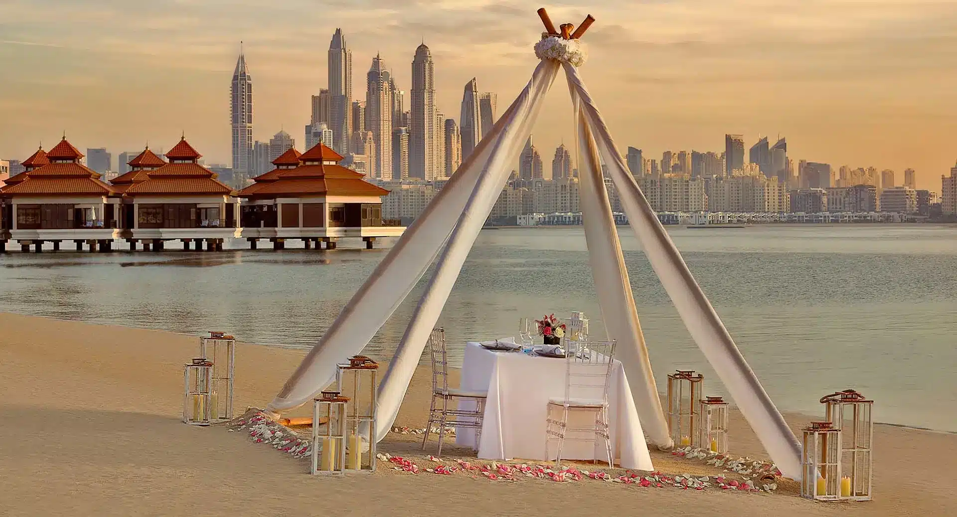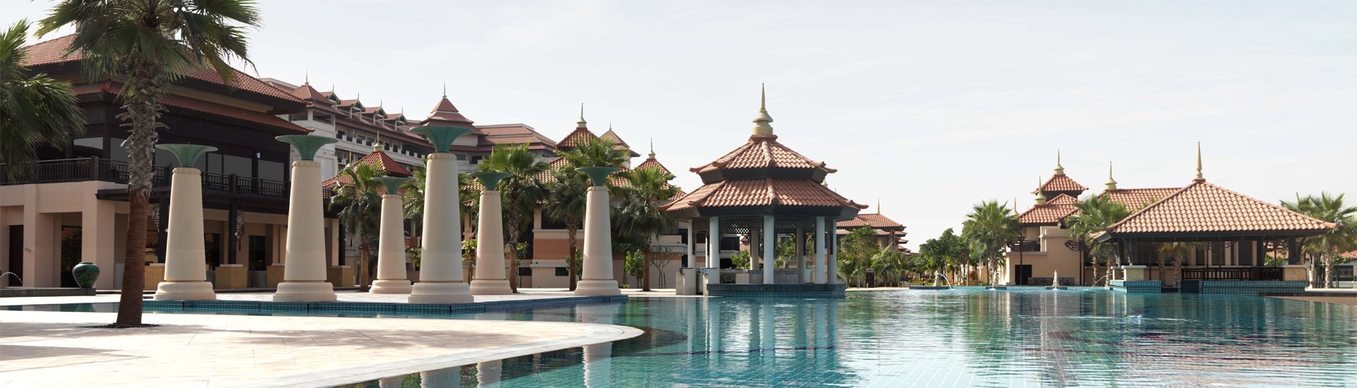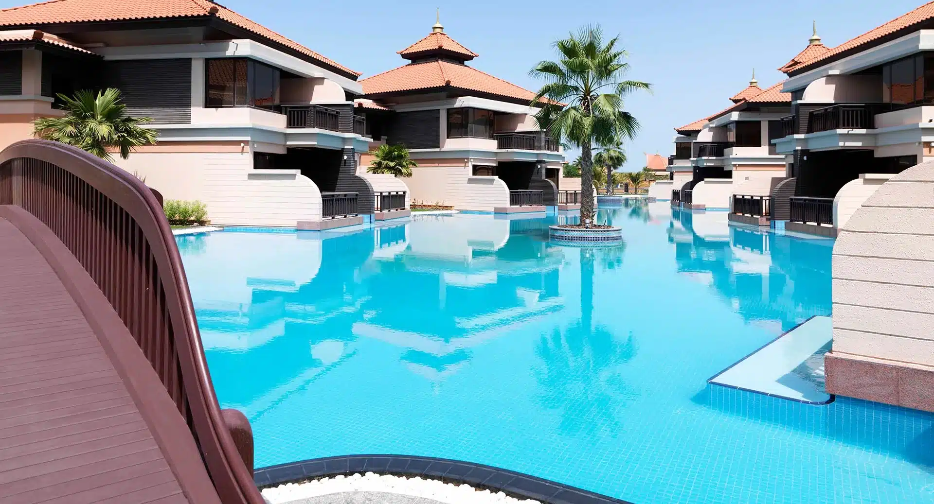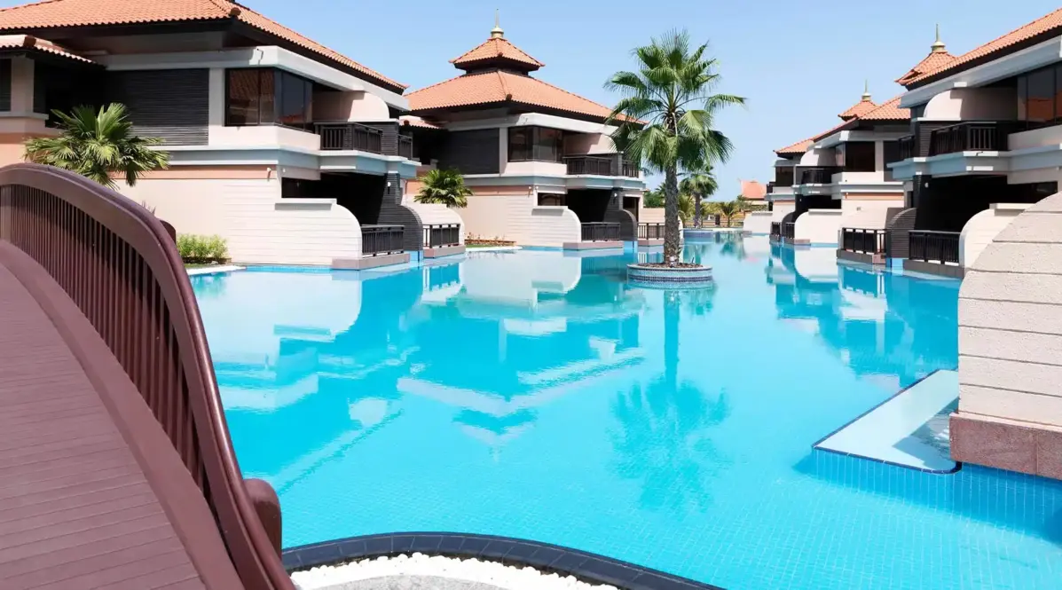 Anantara The Palm Dubai Resort is a luxurious beachfront escape located on the iconic Palm Jumeirah. Offering a blend of Thai-inspired architecture and modern Arabian elegance, the resort features overwater villas, serene lagoon pools, a private beach, and world-class dining options. Perfect for relaxation or adventure, it provides a peaceful retreat with stunning views of the Arabian Gulf.
