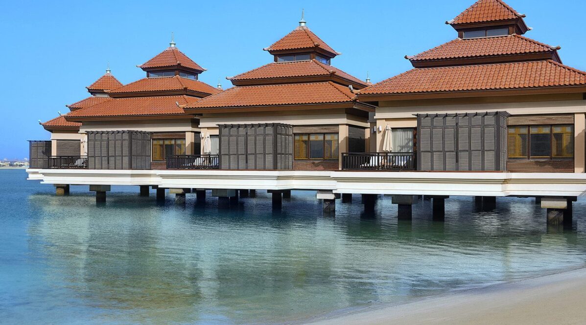 UAE’s first over-water villas featuring glass floor panels, oversized soaking tubs, and Villa Host service.