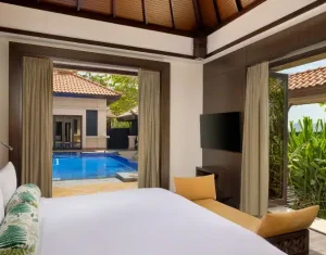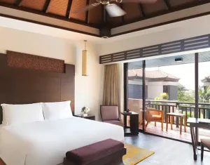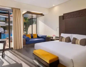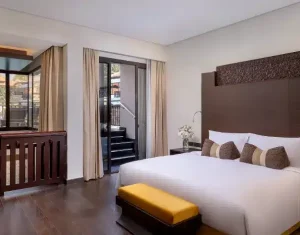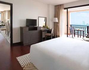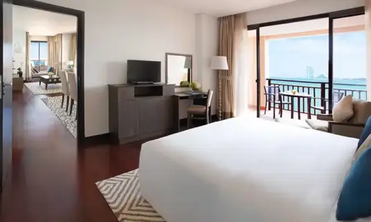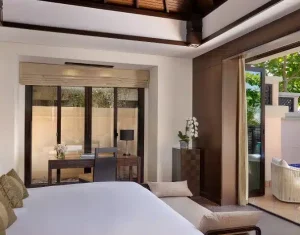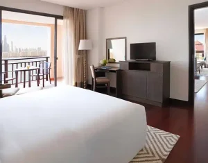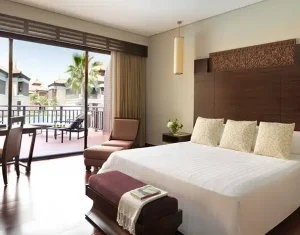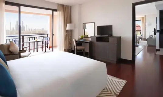Anantara The Palm Dubai Resort offers elegant accommodations, including overwater villas, lagoon-access rooms, and beachfront suites. Each room blends modern luxury with Thai-inspired design, featuring private balconies or terraces, plush furnishings, and stunning views of the Arabian Gulf or serene lagoons.