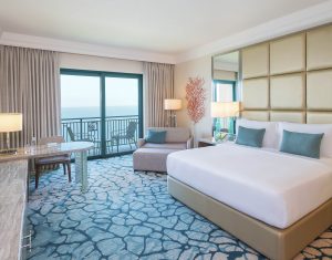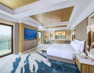 Within the most iconic hotel in Dubai, it’s no surprise the rooms are as impressive as the hotel exterior. Inspired by the legend of Atlantis, hues of gold and aquamarine dress the expanse of the space, mimicking the majesty of the sea. After an action-packed day hitting the world’s largest waterpark, Aquaventure, or exploring the mesmerising Lost Chambers aquarium (both available to all guests) you’ll be pleased to relax on the plush beds or take in sweeping views of the glistening Arabian Gulf. Join the Imperial Club for exclusive benefits, including continental breakfast, afternoon tea, sunset happy hour and more.