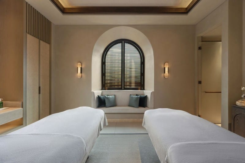 The resort’s Satori Spa & Hammam offers a tranquil sanctuary inspired by Moorish traditions. Treatments include massages, facials, hammam rituals, and holistic therapies, all set in a calm desert-inspired environment. There’s also a fitness centre and space for yoga and breathwork, making it easy to balance relaxation with wellness activities.