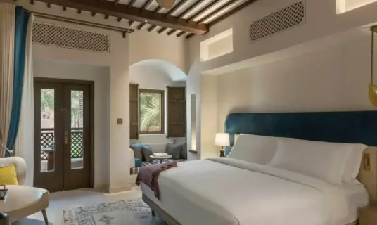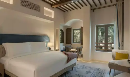Bab Al Shams a luxurious desert resort nestled among golden dunes. Designed like an authentic Arabian fort, this serene oasis offers peaceful courtyards, rejuvenating spa treatments, and tranquil pools. Enjoy unforgettable experiences like camel rides, falconry, and traditional Arabian feasts under the stars, complete with mesmerizing entertainment. Bab Al Shams is the perfect blend of desert charm and modern luxury for a culturally immersive, tranquil getaway.