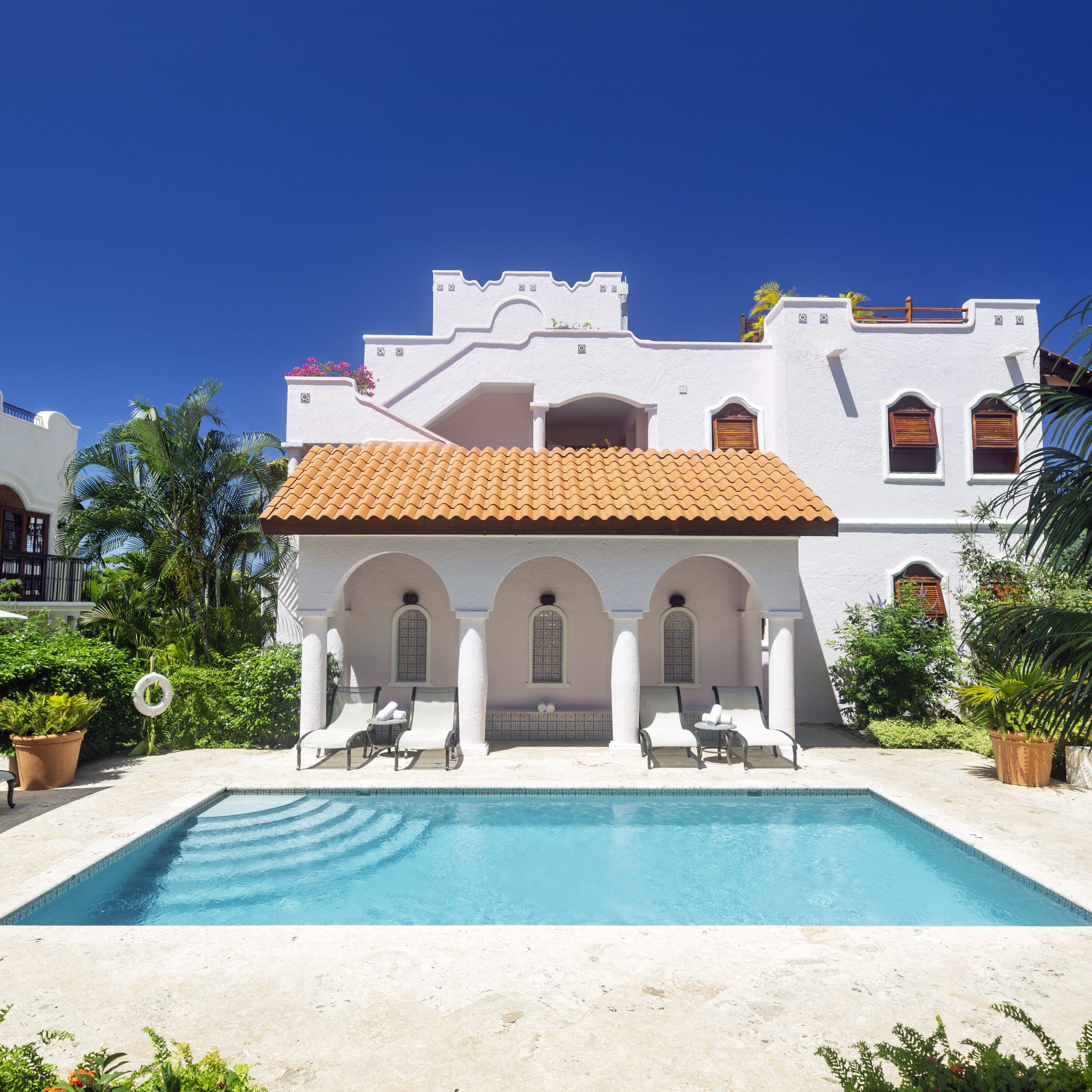 These lavish and generously sized villa suites are located in the beautiful Spanish Courtyard. With warm tiles and balustrades draped with tropical gardens, they overlook the courtyard pool and boast partial ocean views. They are 179 sqm and feature a separate living/dining area and a large private terrace or balcony accessed by both the bedroom and living area.