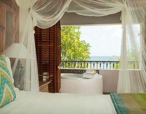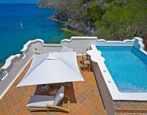 The elegant Cap Maison is a romantic resort carefully crafted for couples seeking solitude. Located on the sprawling Cap Estate, a former sugarcane plantation in northwest Saint Lucia, this Spanish-Caribbean style resort offers incredible views of Pigeon Island and as far as Martinique on a good day. Full of character with gorgeous whitewashed walls, cedar wood floors, Jalousie shutters and authentic wickerwork furniture, fine dining and relaxing by the infinity pool is the order of the day here. Perched above Smuggler’s Cove, a scenic beach reached via a series of steps in the cliffside, this 5-star boutique resort offers some much-needed peace and quiet within each reach of energetic Rodney Bay.