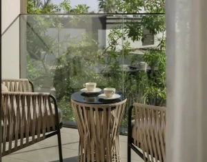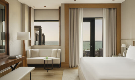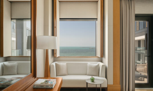 Bask in breathtaking sea views from this light-filled sanctuary, complete with a private balcony for savouring the scenery. The interiors blend soft, modern elegance with luxe details, while the marble bathroom, with its soaking tub and rain shower, adds a serene touch to the experience