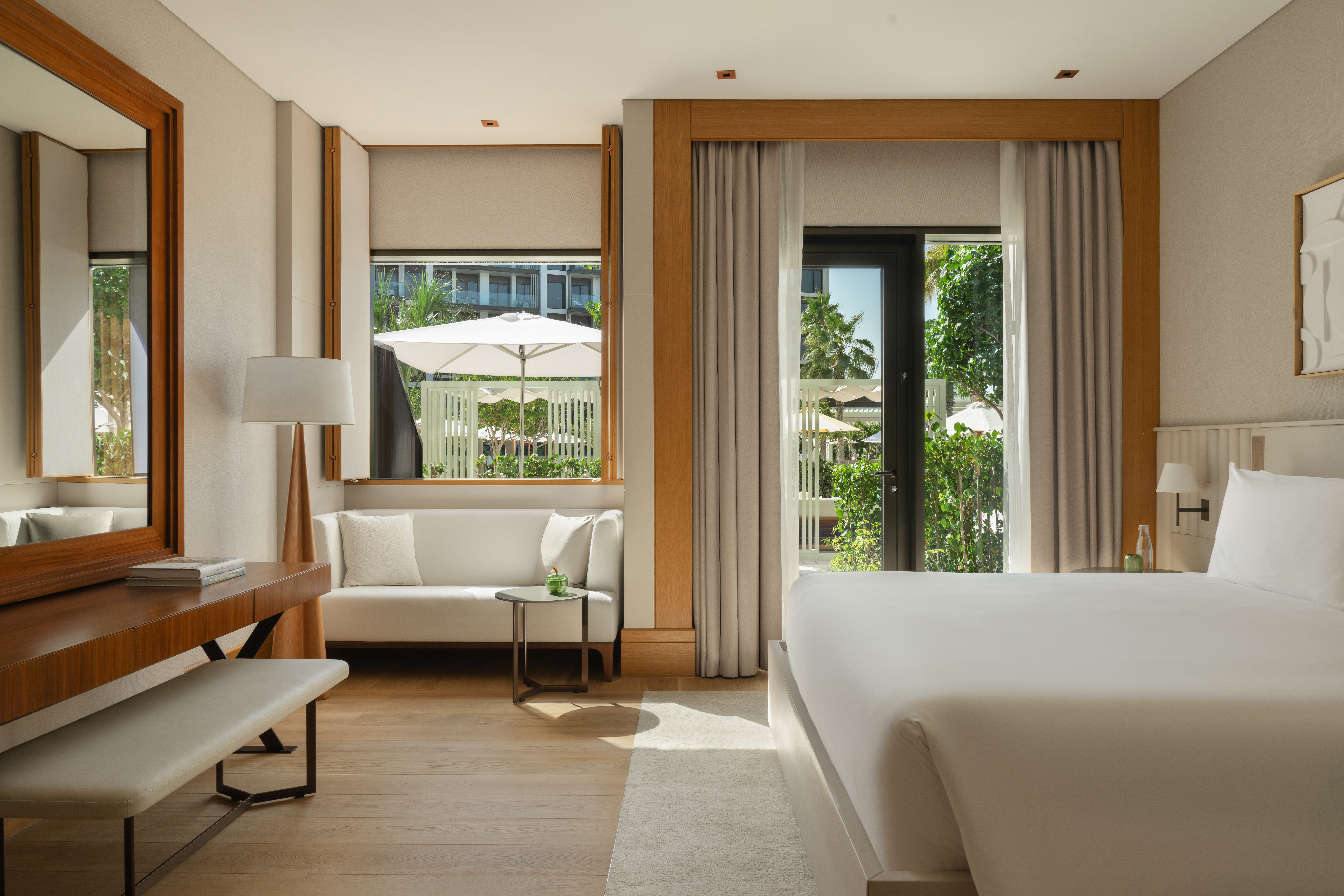 Delano Dubai offers a chic, contemporary approach to luxury, with rooms and suites that feature modern decor, private balconies or terraces, and sweeping sea or garden views. Each space is designed for ultimate relaxation, with spacious layouts, all-marble bathrooms, and refined furnishings in serene palettes.