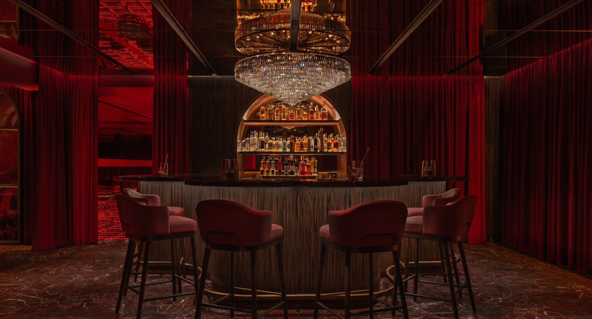 As night falls, the Rose Bar comes alive, where sophisticated bartenders craft timeless cocktails in an intimate, stylish setting. The elevated menu offers a refined take on American bar classics, a tribute to the original Delano Miami