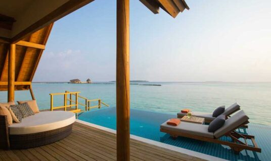 Emerald Faarufushi Resort & Spa offers luxurious overwater and beach villas, each featuring elegant design, private pools, and breathtaking views of the ocean or lush surroundings. These spacious villas combine modern comforts with natural beauty for a serene island escape.