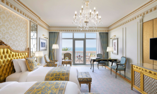 Enjoy sweeping views of the Arabian Gulf and breathtaking sunsets. With bespoke Francesco Molon furnishings, exclusive amenities, and advanced multimedia, this elegant room blends timeless luxury with modern comfort for an elevated and unforgettable stay.