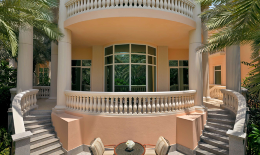 The Imperial Villa embodies regal magnificence with four bedrooms, a ground-floor pool, expansive gardens, a dedicated spa, private entrance, a Rosa Portogallo marble bathroom, and stunning Dubai skyline views, offering privacy, and refined luxury.