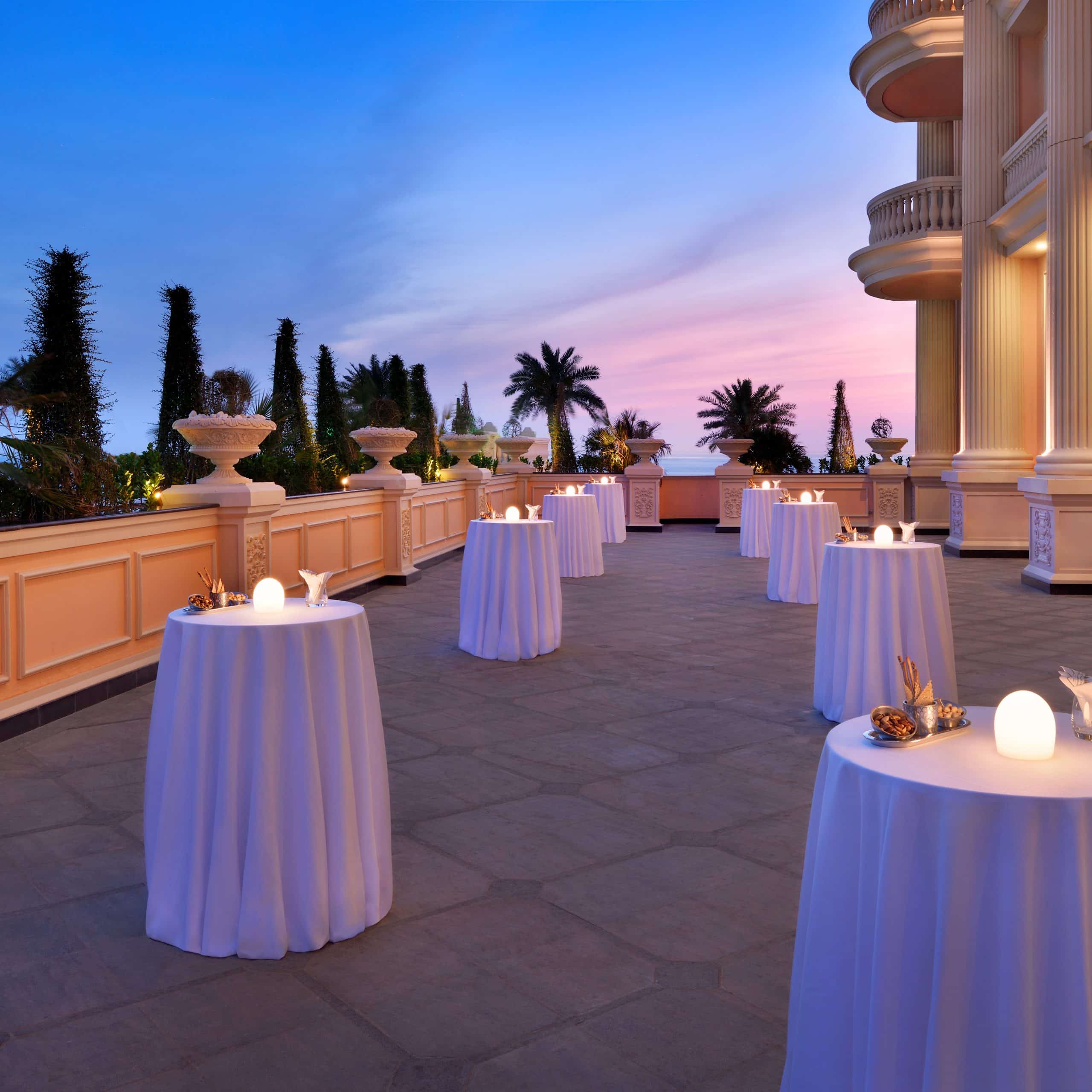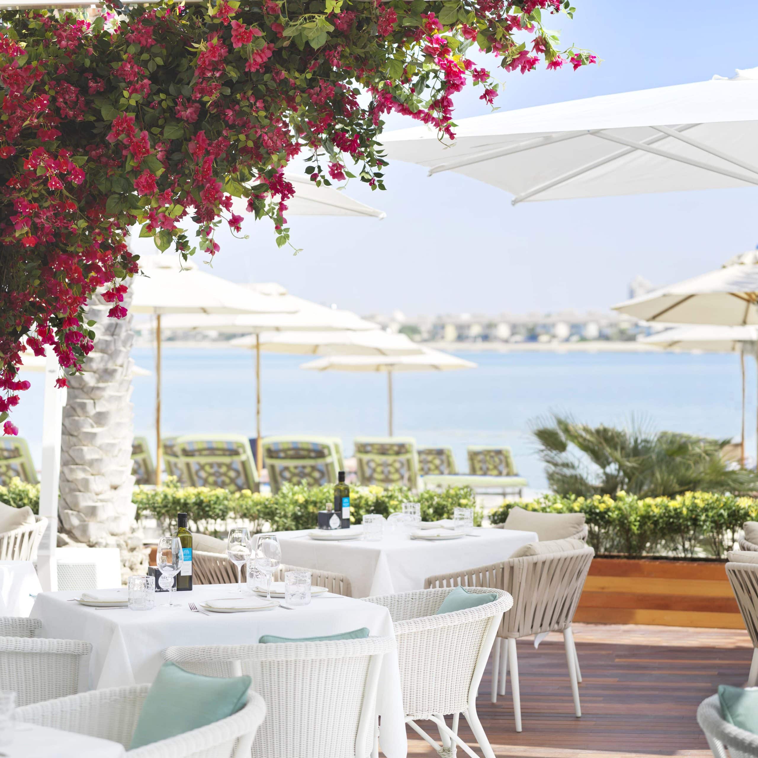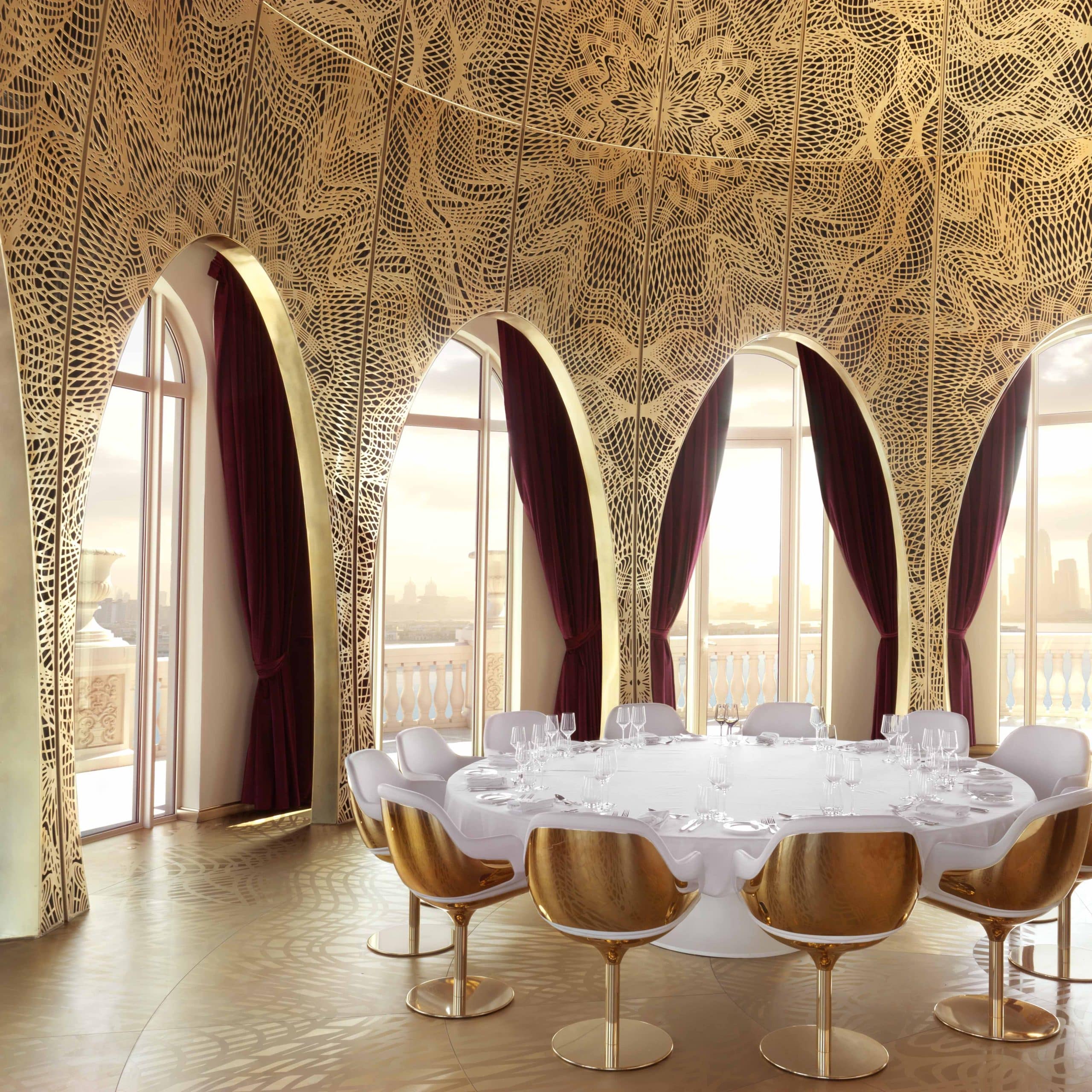 Glamorous dining experience for Club Room, Suite and Villa guests. Overlooks Palm Jumeirah. Live entertainment