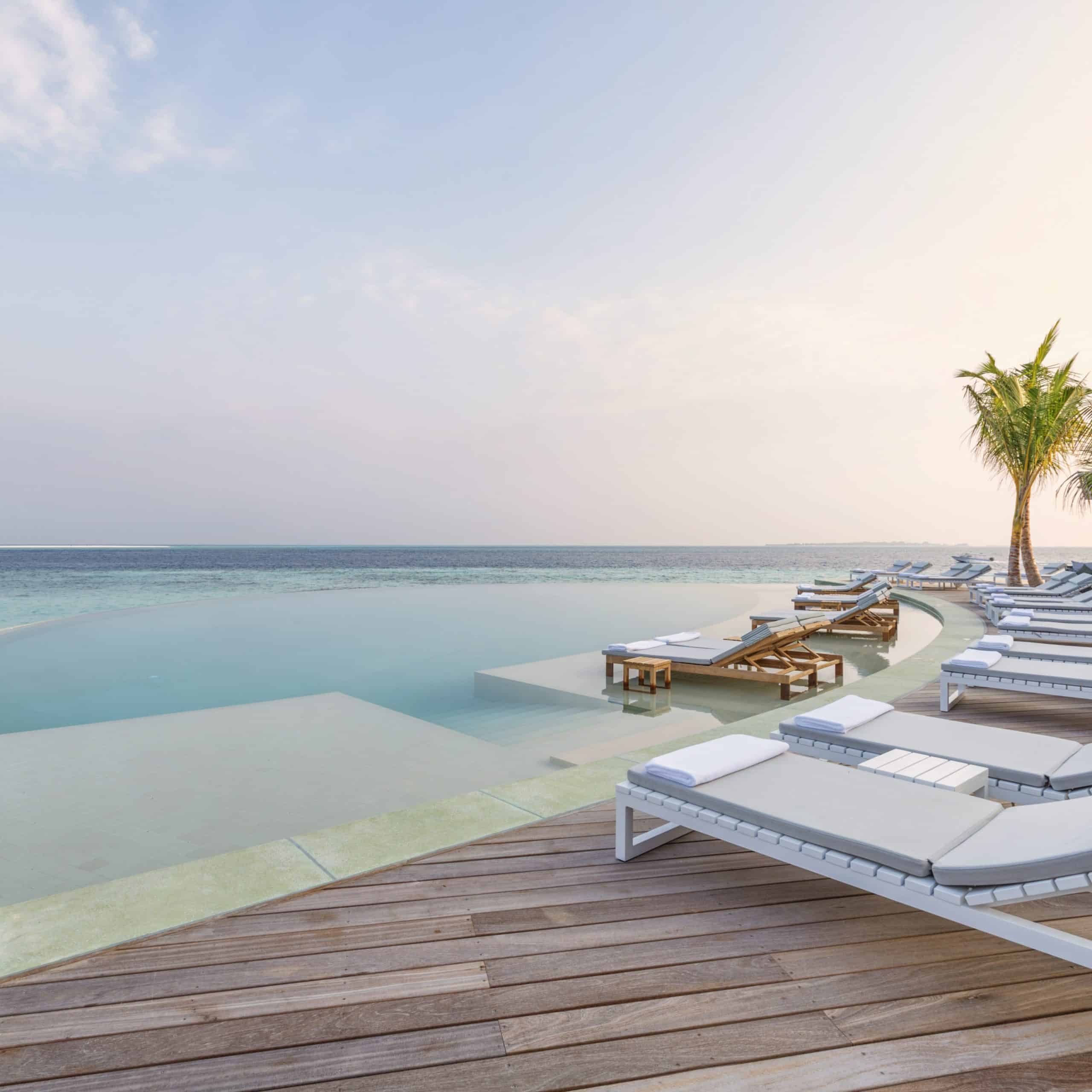 An adults-only paradise in the Lhaviyani Atoll, the Hurawalhi Island Resort offers barefoot bliss with romantic beach and overwater villas and exceptional dining experiences. Spend your days relaxing beside the sea-facing pool, starting the day with yoga and mindfulness classes, or exploring the extraordinary marine life around the coral reef just offshore, accompanied by frolicking dolphins and eagle rays. Live music, jazz nights and nature talks are often on the weekly entertainment programme at this 5-star resort, ensuring there is just as much to enjoy when the sun goes down.