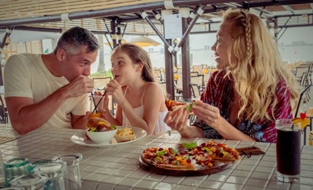 After a lazy day in the sun, get comfortable at Captain’s Restaurant & Bar, serving fresh dishes, a selection of mouth-watering pizzas and refreshing beverages. The easygoing vibe is perfect for a relaxed lunch and the sound of lapping waves make for a pleasant evening under the stars.