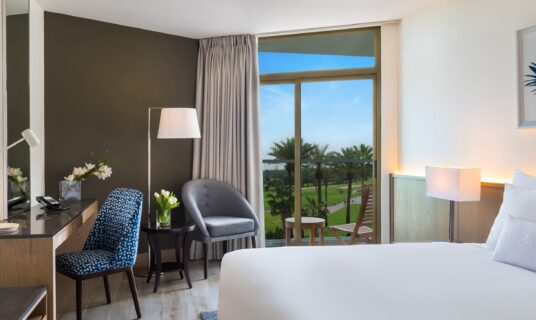 A private terrace overlooking the pool, the azure waters of the Arabian Gulf or the resort gardens, the Deluxe Sea View Rooms are spacious and ideal for guests looking for privacy and comfort.