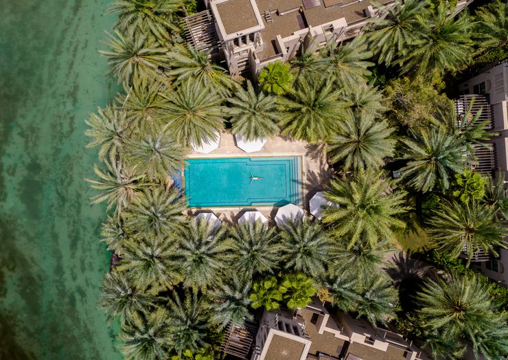 A beautifully secluded 275 sqm villa featuring two bedrooms, a private plunge pool, in-villa kitchen, dedicated butler service, and serene views of the resort’s lush gardens and winding waterways.