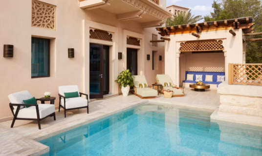 Inspired by the Arabian summerhouse, tranquil canals, peaceful courtyards, pristine gardens and serene seas will calm your mind, so you feel at one with nature. And nothing beats the room’s opulent designs – they’re elegant, majestic and, most importantly, timeless. Private terraces and plunge pools give these charming but modern spaces a sense of intimacy and desire. Alternatively, if it’s endless exhilarating fun you’re after, the Wild Wadi Waterpark awaits… You’ll receive access to a dedicated abra station, afternoon tea and sundowners (along with other exclusive benefits) when booking a suite.