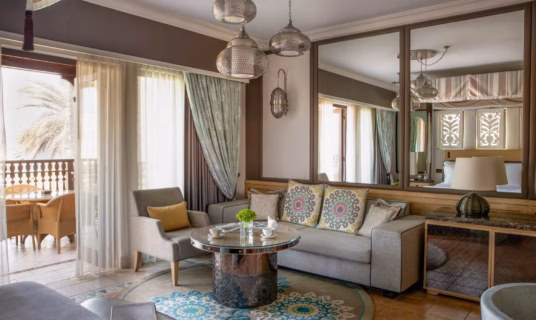The Three Bedroom Malakiya Villa offers an expansive and ultra-private sanctuary, complete with elegant living spaces, exclusive services, and serene views of the resort’s lush gardens and winding waterways.