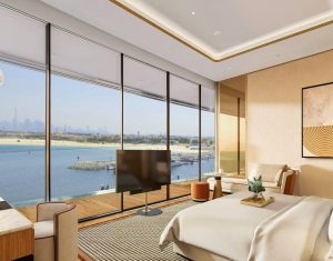 Private marina and Dubai skyline view