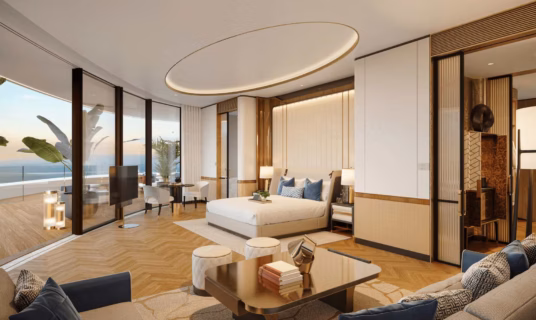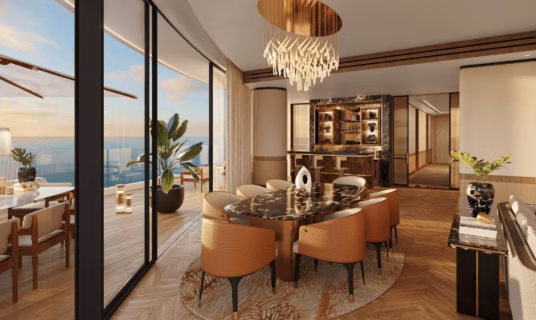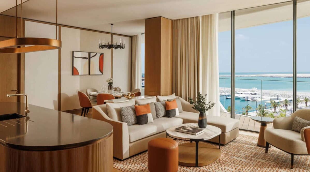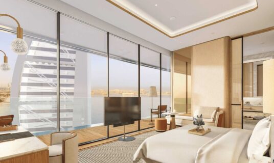 Experience effortless luxury in a suite that features a panoramic terrace offering unobstructed infinity views of Dubai’s shimmering shoreline. This stunning setting provides the perfect blend of glamour and tranquility, allowing you to relax while taking in the breathtaking beauty of the city’s coastline.