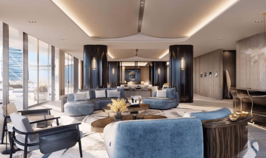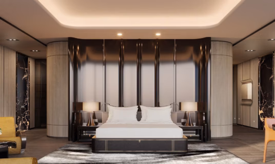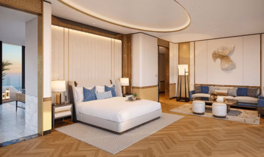 Step into a world of luxury in this opulent Five-Bedroom Royal Suite, where every detail is designed for ultimate indulgence. The suite features a spacious private terrace with a sparkling plunge pool, a fully equipped bar, and a dedicated gaming area for entertainment. For added relaxation, it also includes a private treatment room, offering a truly regal experience that caters to every need.