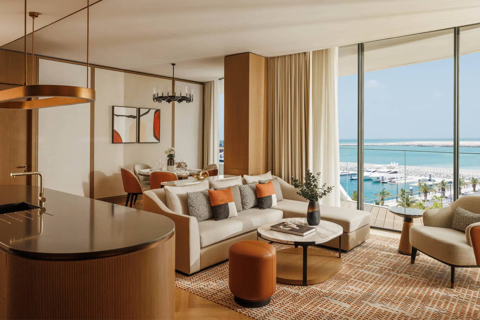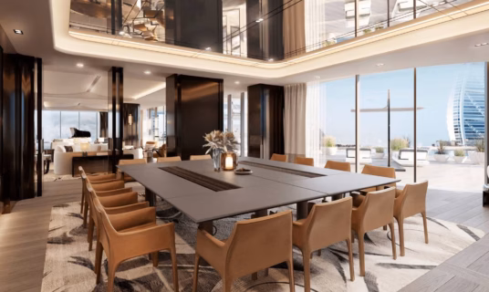 In this elegantly designed suite, you can unwind and find tranquility while enjoying sweeping panoramic views of the sparkling Arabian Gulf and the serene private marina. The peaceful ambiance, combined with the stunning vistas, creates the perfect retreat for relaxation and rejuvenation.