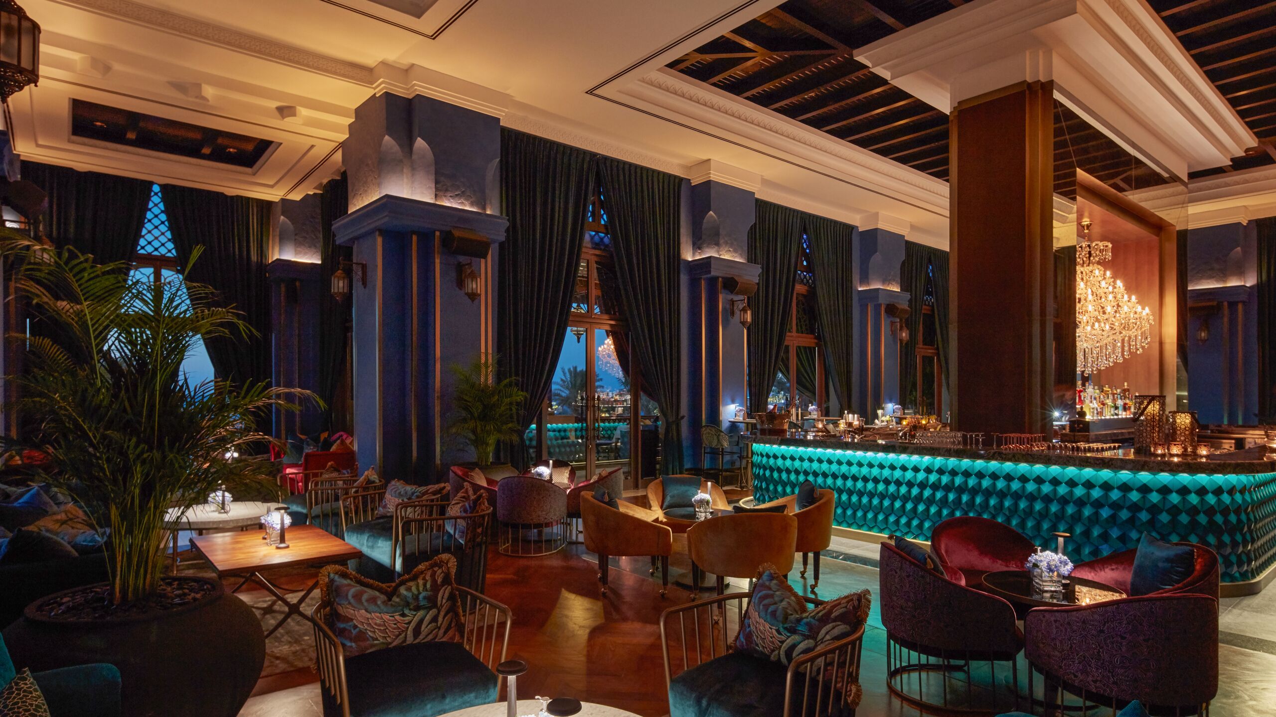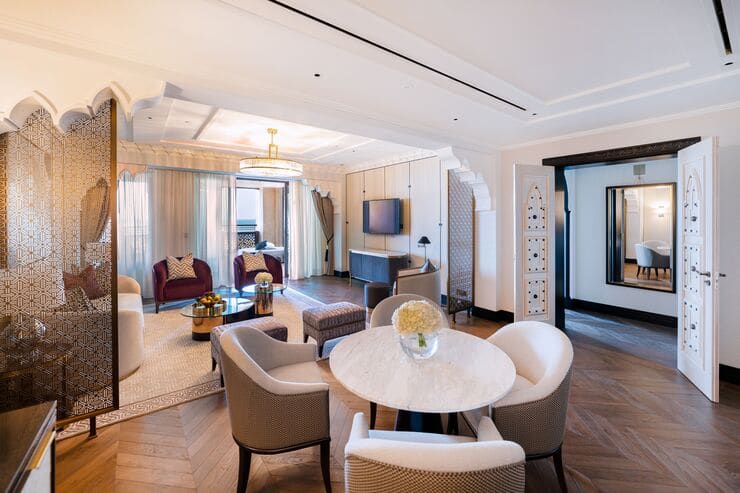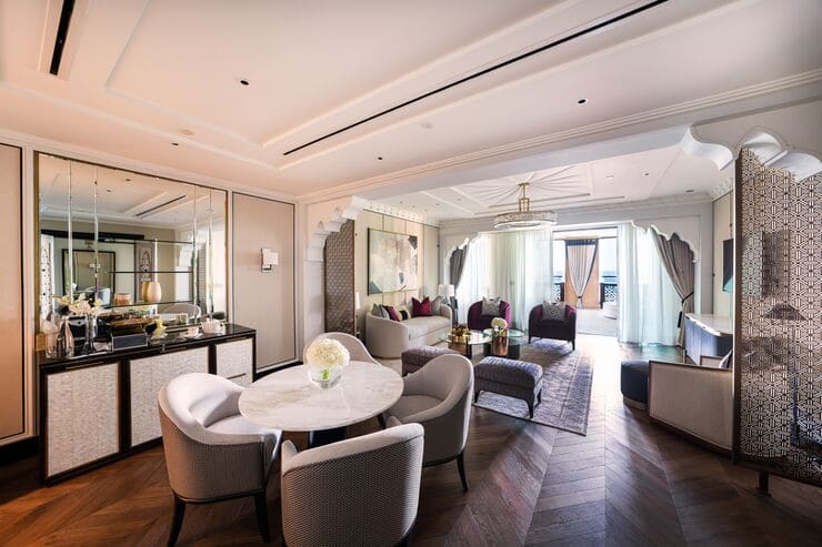 The Club Arabian Room blends traditional Arabian design with exclusive Club privileges, including access to The Amal Lounge, while offering direct beach and pool access.