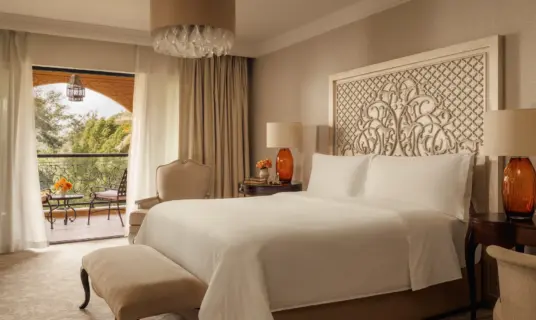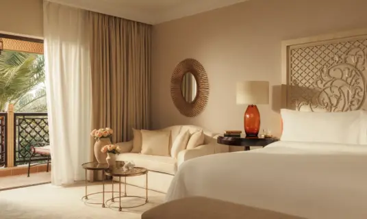 An exclusive retreat combining residential-style luxury with serene garden or pool views and refined Arabian-inspired touches.