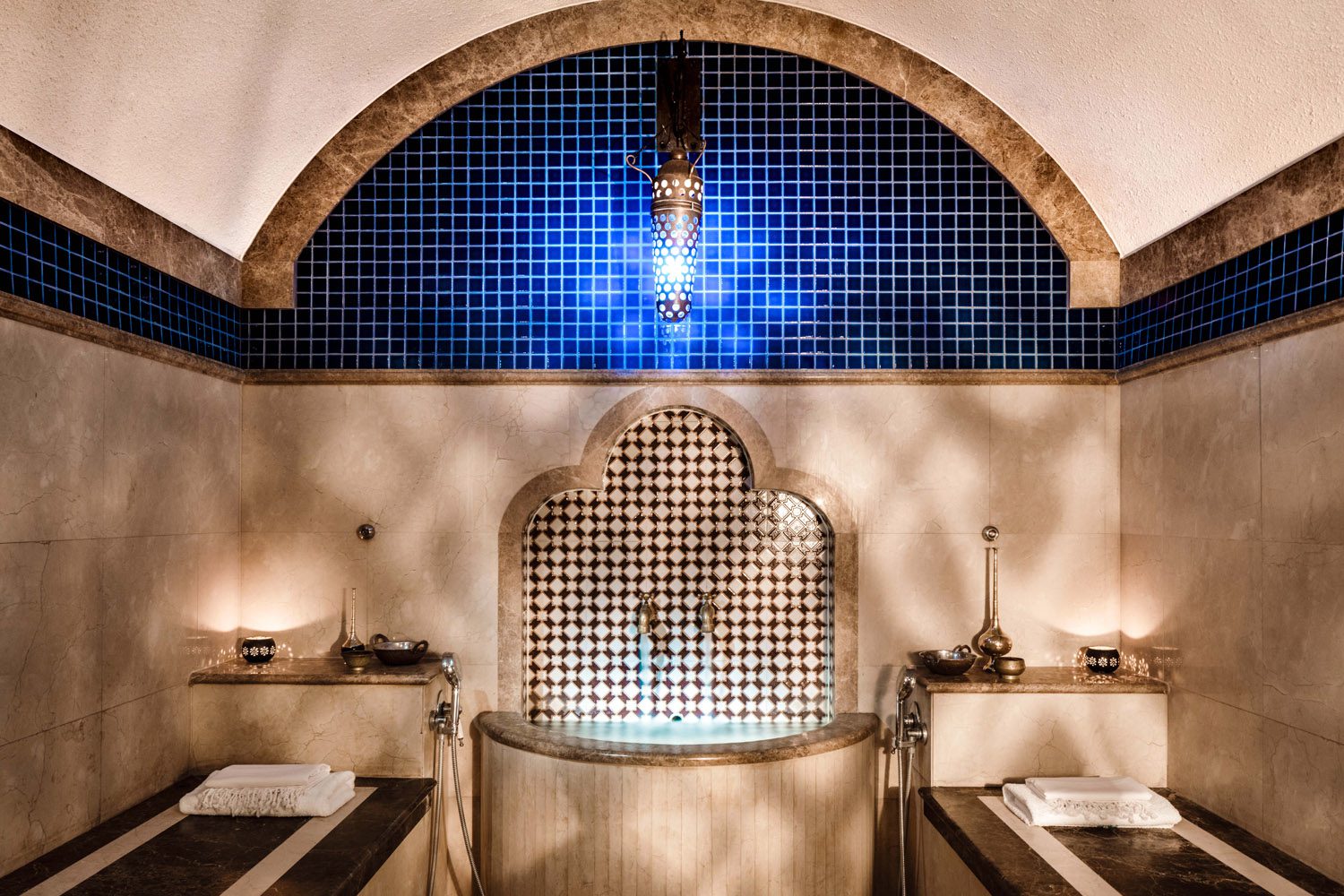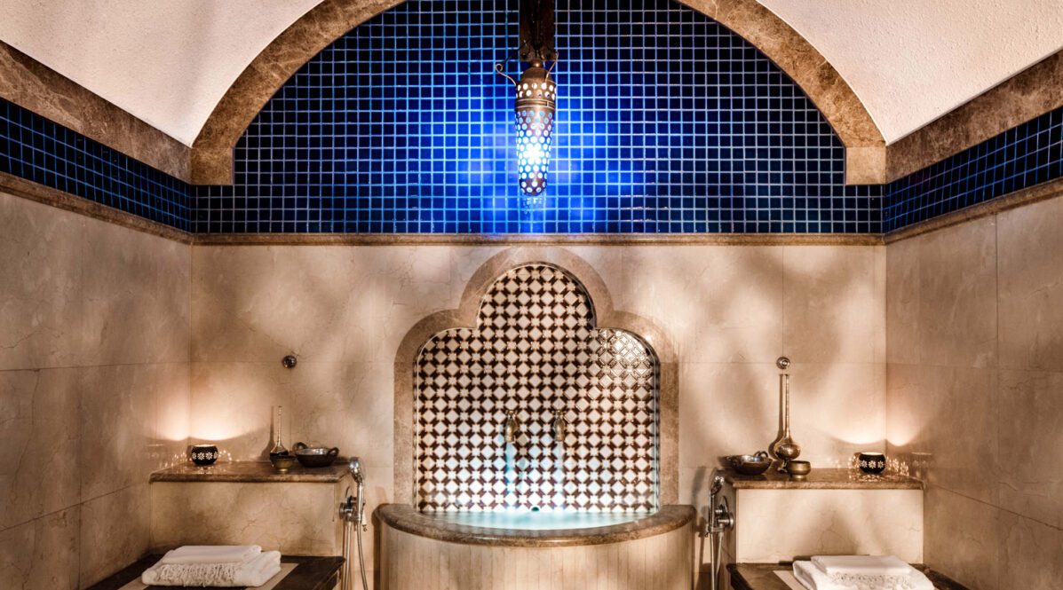 Centred around tranquillity and traditional healing, the One&Only Spa and Oriental Hammam form one of Dubai’s most atmospheric wellness sanctuaries. Guests can experience 12 private treatment suites, relaxation lounges, steam rooms, and a marble-domed Oriental Hammam offering black soap cleansing, steam rituals, ghassoul wraps, and honey treatments. A modern fitness centre, yoga, tennis, padel, and wellness activities complement the experience.