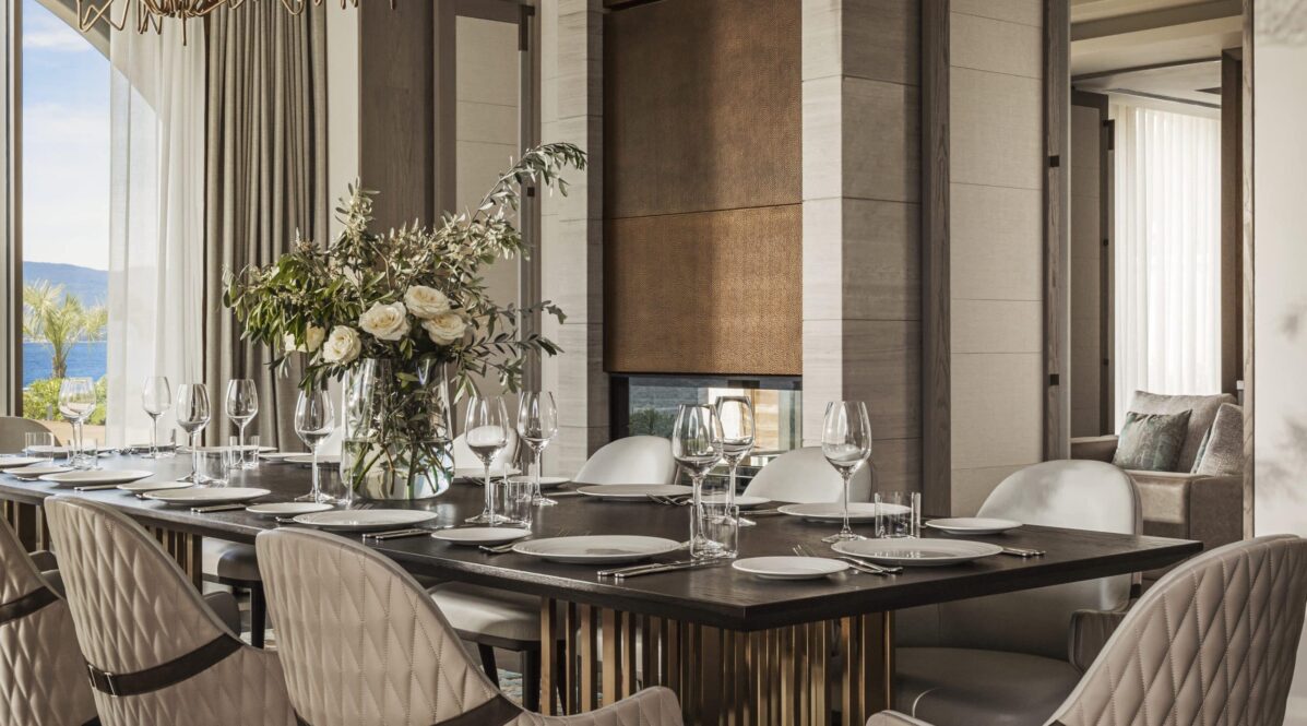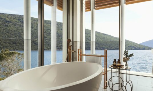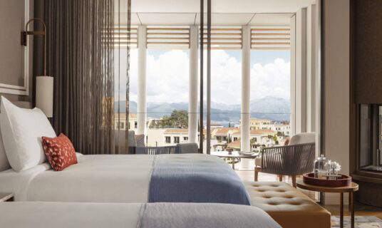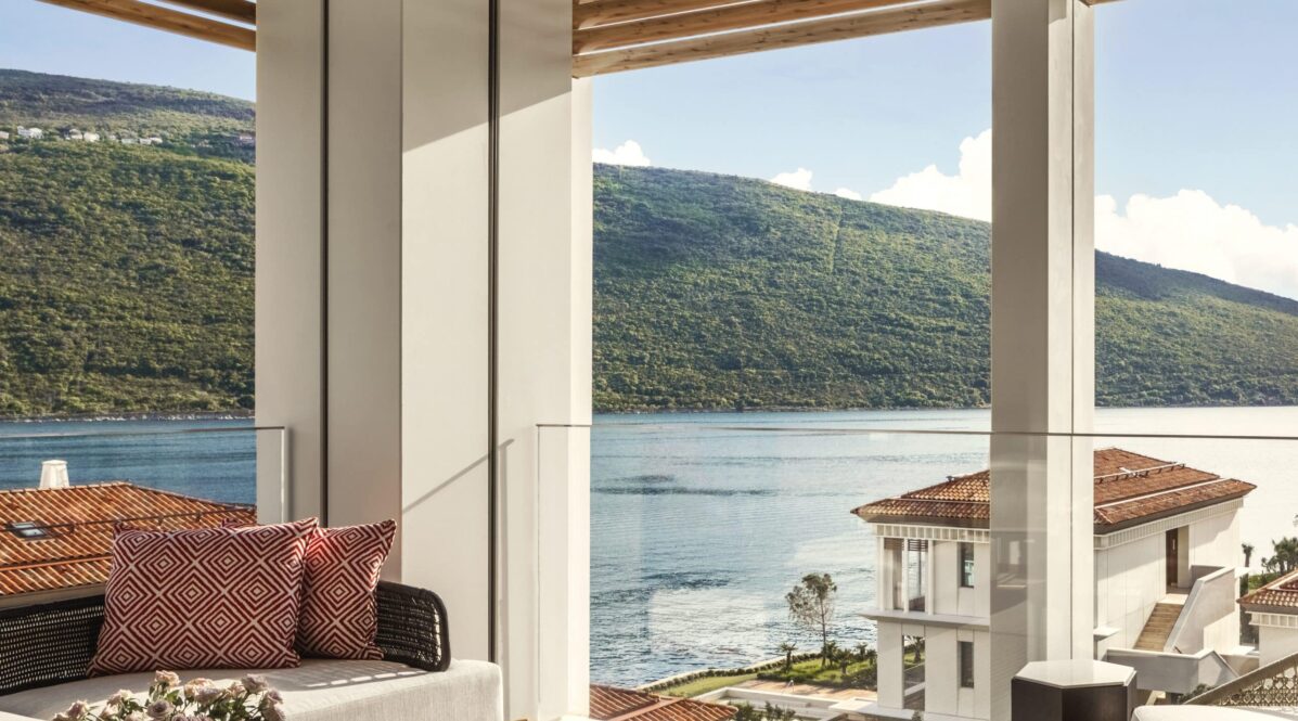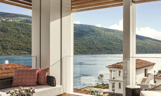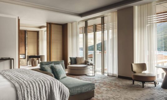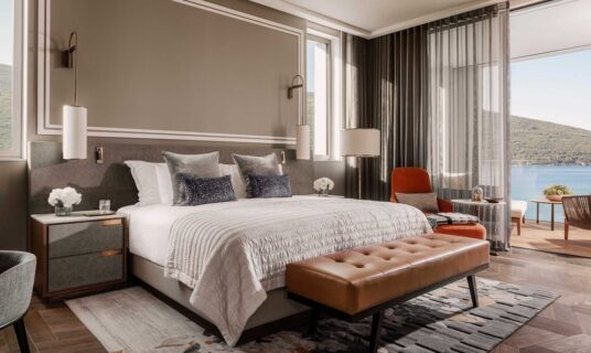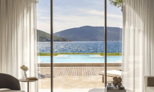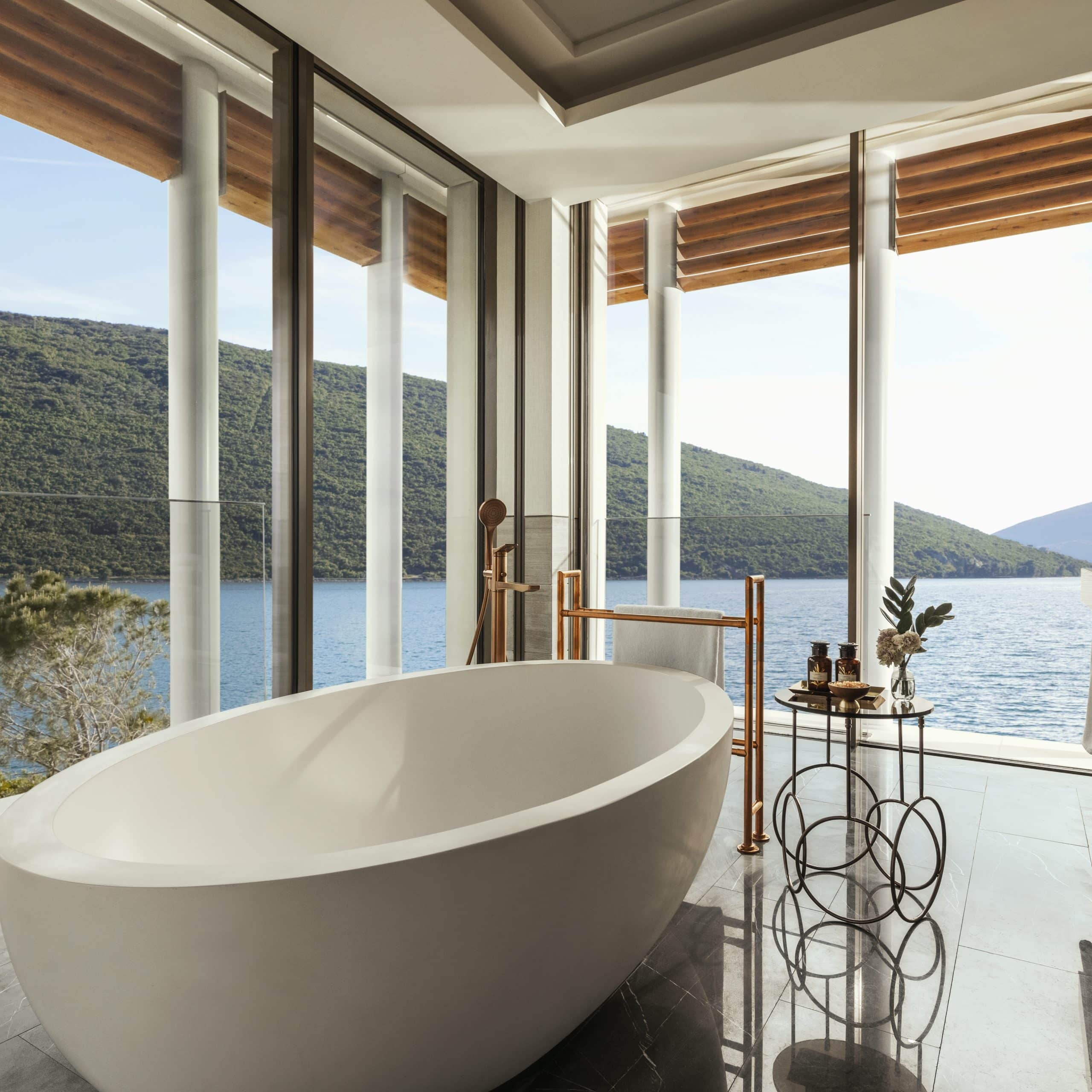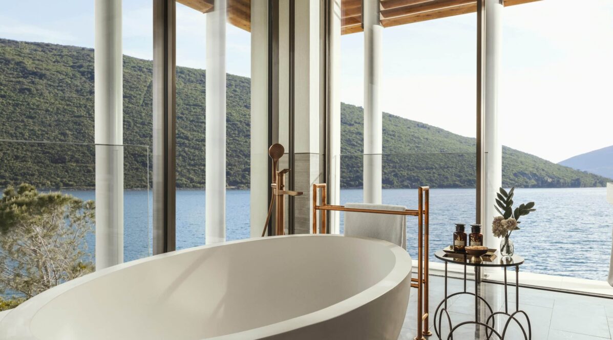 The design at One&Only Portonovi honours the region’s natural beauty — interiors bathed in soft Mediterranean tones, with floor-to-ceiling windows, private terraces, and spacious bathrooms.