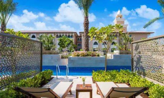 The resort features Anjana Spa, considered the island’s flagship wellness facility. Here, guests can enjoy traditional Turkish hammam rituals alongside a snow room (unique in Abu Dhabi), steam room, sauna, outdoor spa‑pool and jacuzzi, plus a range of body and facial treatments, aromatherapy and massage therapies. There are VIP hammam suites for couples. Additionally, guests have access to a fitness centre, tennis courts and a full programme of sports, yoga, and wellness activities.