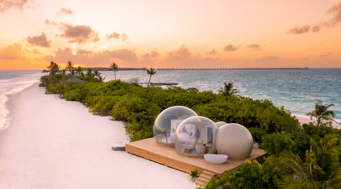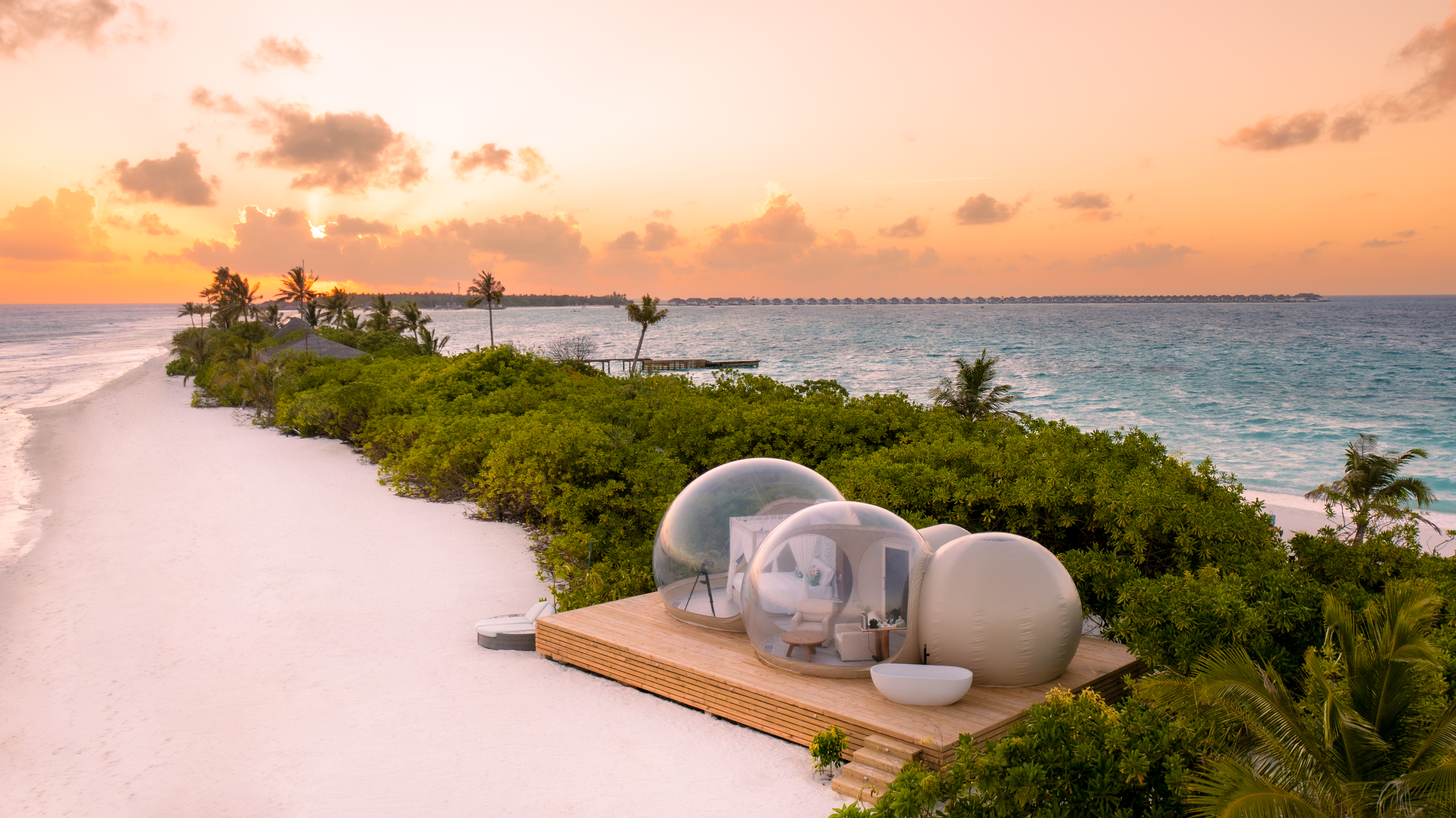 A unique, transparent dome on the sandbank for a romantic night under the stars (~100 m from the main island).