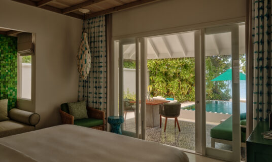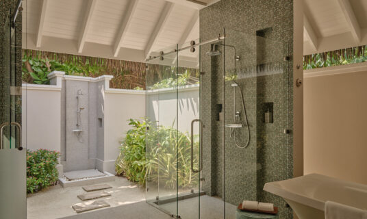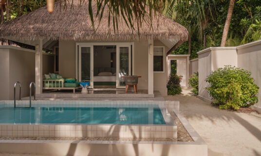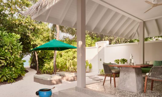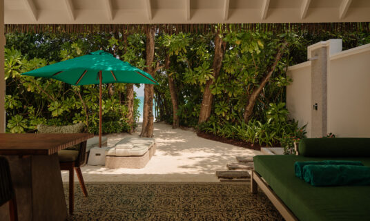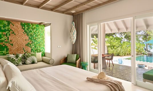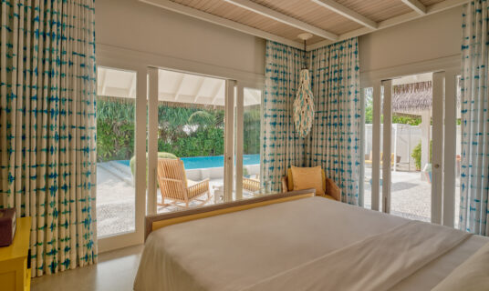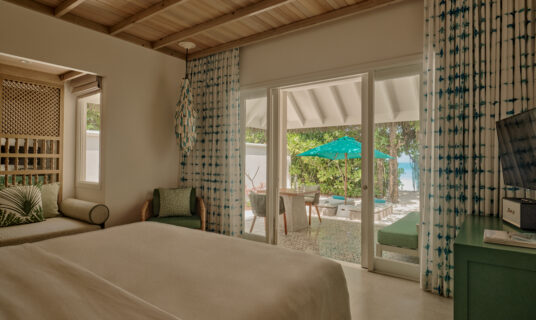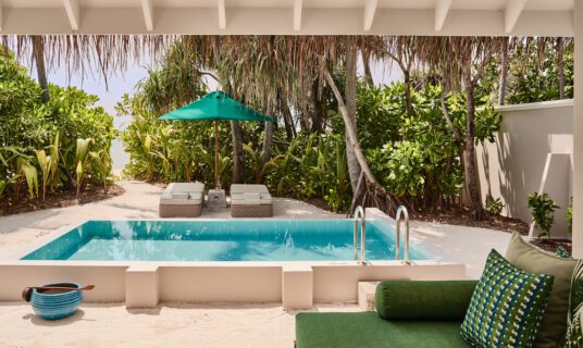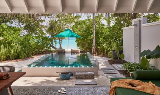 A beachfront retreat combining three bedrooms with private pool, garden terraces, and direct sandbank access, ideal for families or groups.