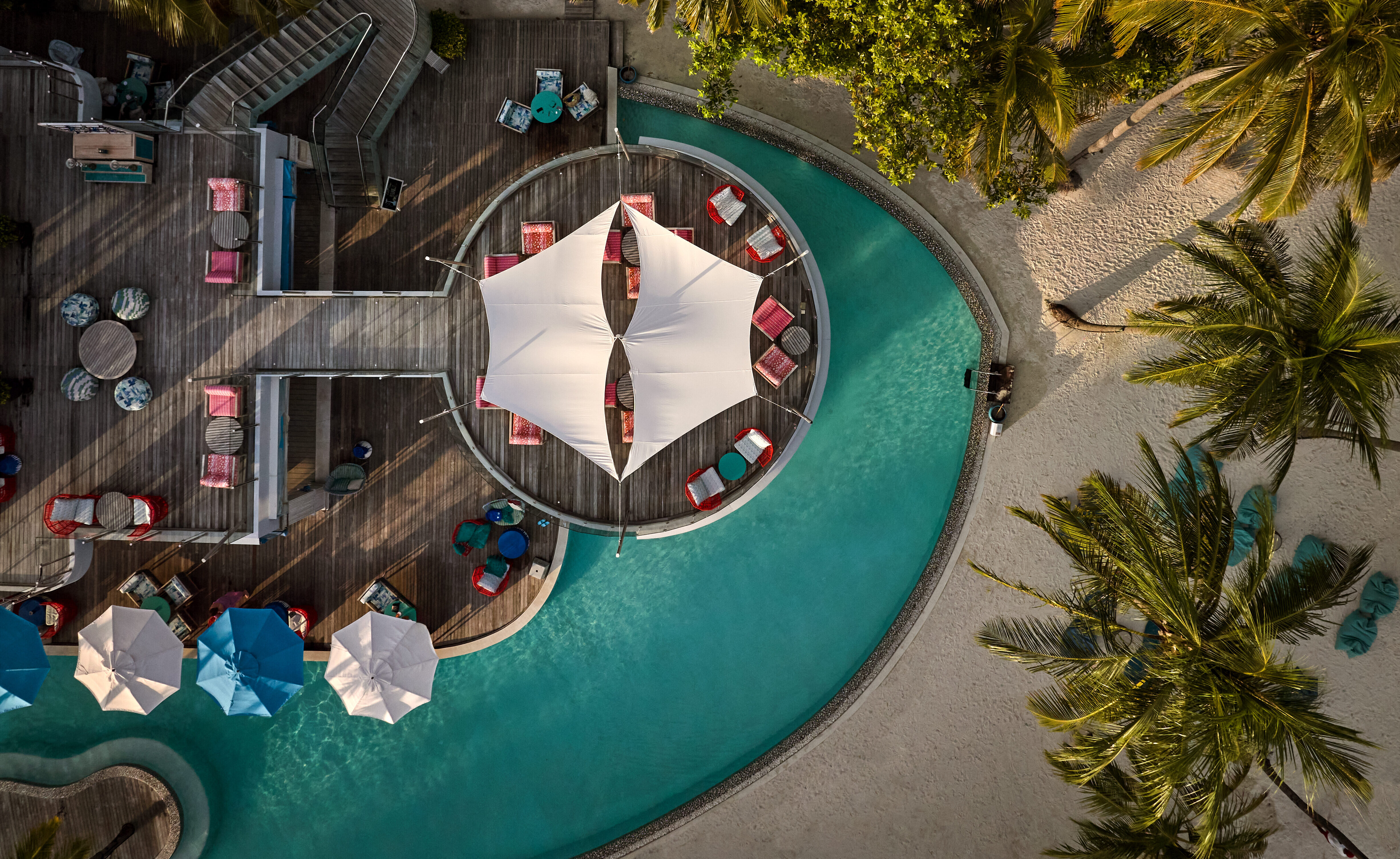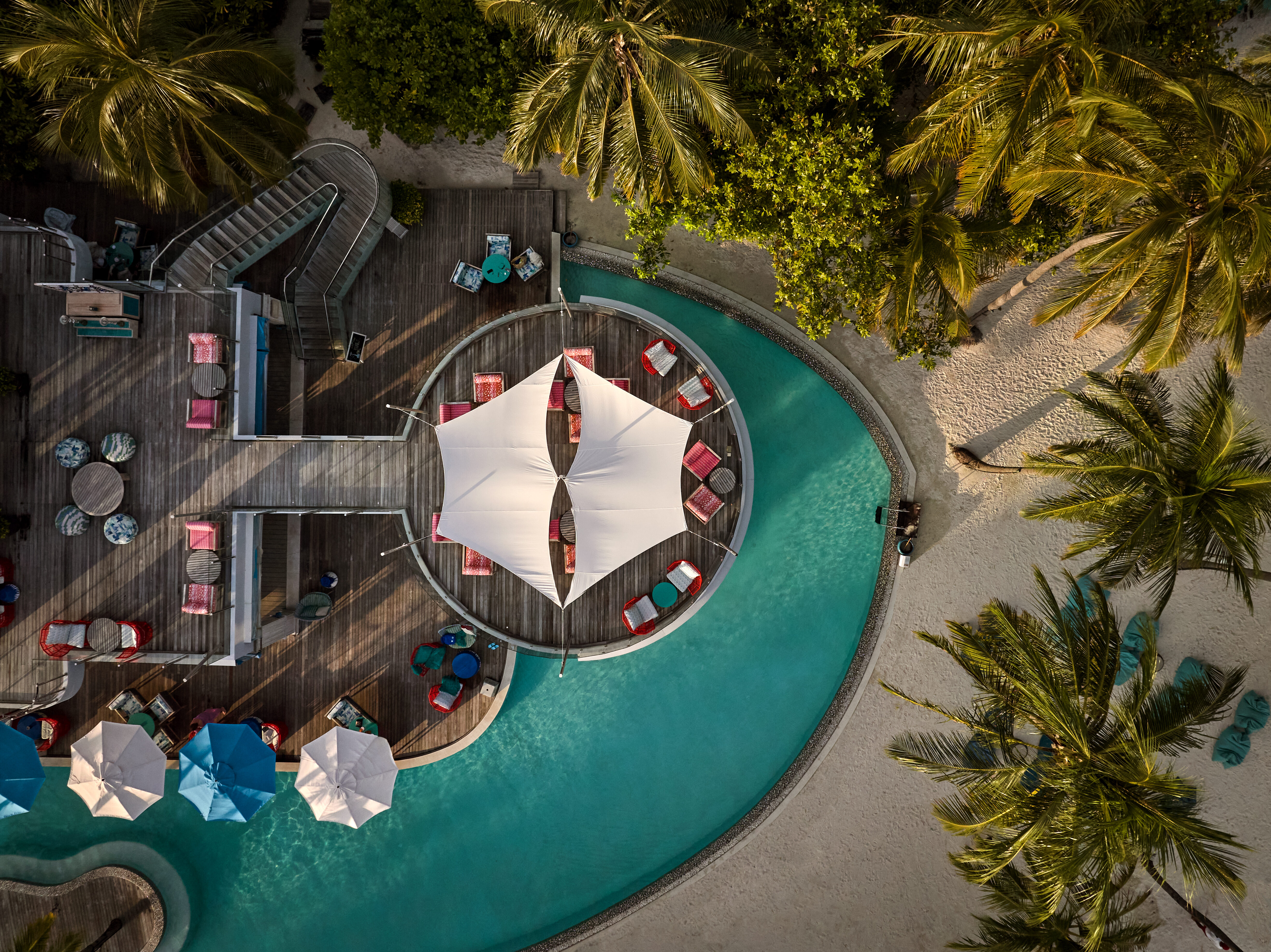 The social heart of Finolhu, relaxed by day, lively by night, with cocktails, DJ sets, and shisha on the upper deck.