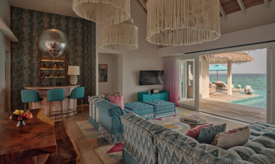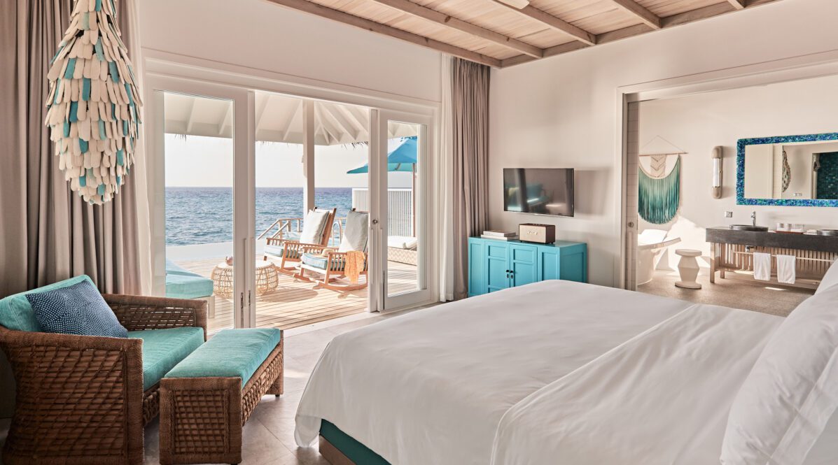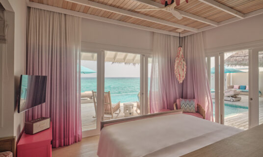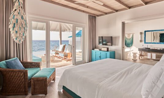 An ultra‑luxury over‑water villa at the end of the jetty, complete with two bedrooms, an 8‑m pool, bar and your own rock‑star buggy.