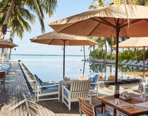 Guests can unwind at the Water’s Edge Bar, offering refreshing drinks and light bites allowing guests to soak in the ocean breeze at any time