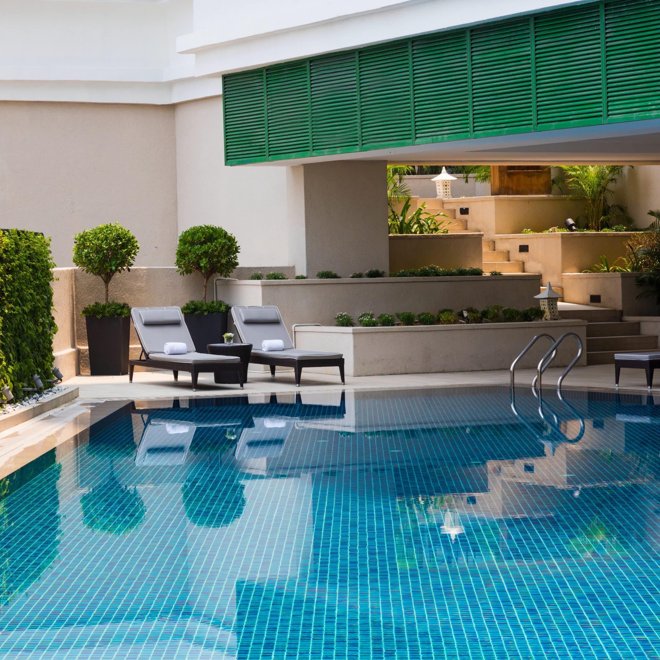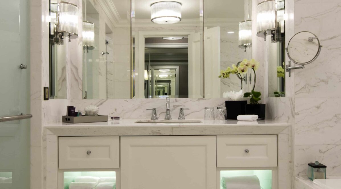A beautifully appointed room featuring city or pool views, marble bathroom, and elegant furnishings.