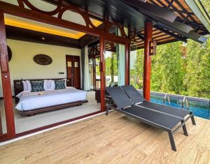 The Vijitt Resort Phuket offers luxurious Thai-style private villas, each designed with spacious interiors and stunning sea or garden views. These serene accommodations blend traditional Thai architecture with modern comforts, providing an intimate and peaceful retreat for guests.