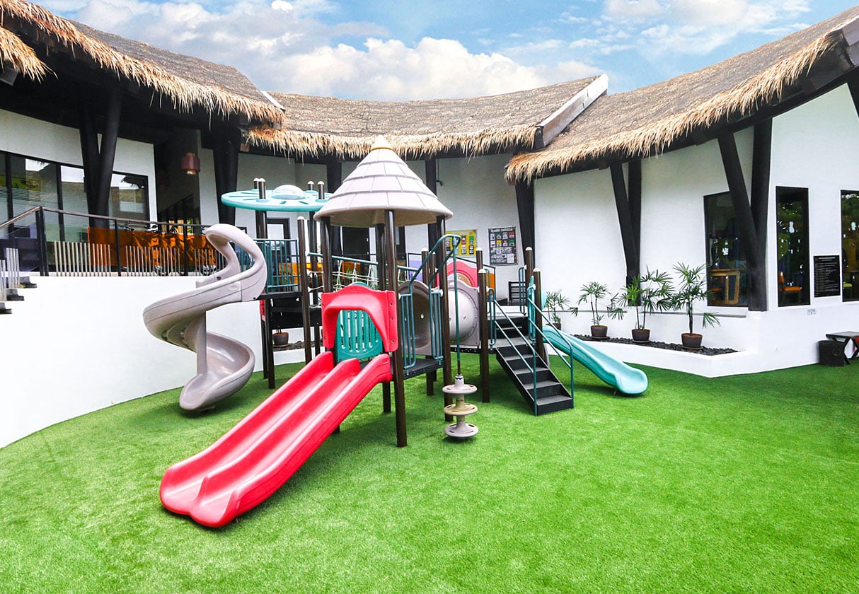 The V Spa sits tucked in the jungle-like grounds, offering a serene retreat with pavilions framed by greenery. Therapists deliver traditional and modern wellness treatments (massages, facials, body scrubs), while facilities also include a gym and opportunities for yoga. Meanwhile, the Rotunda serves as a family hub — combining a kids’ club, fitness centre, library, and cultural activity centre.