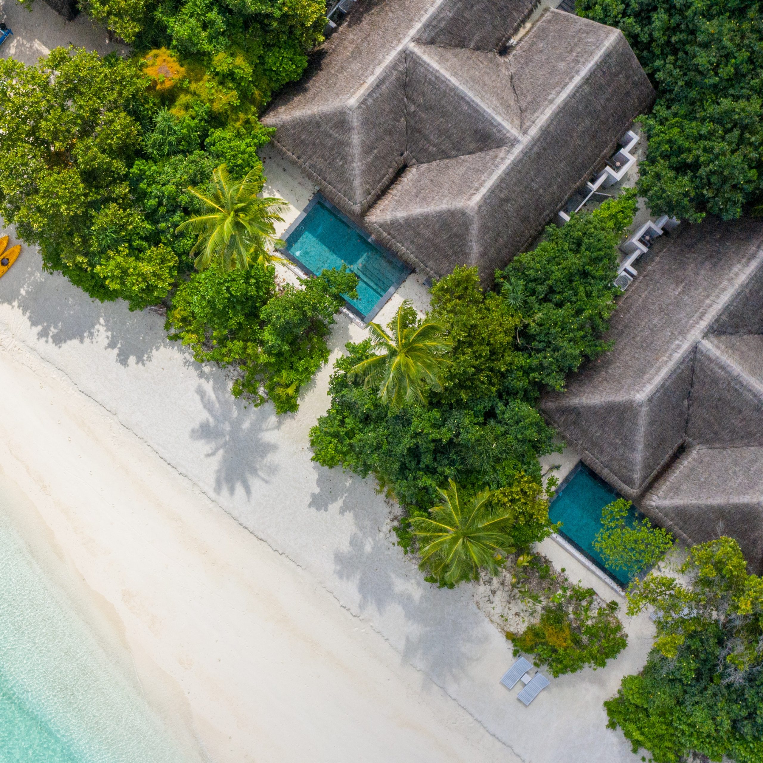 The Four Bedroom Beach Pool Residence is Vakkaru’s most expansive and flexible beachfront sanctuary. At its heart lies the newly enhanced Two‑Bedroom Beach Pool Residence, which features a 42 m² private pool, indoor living room, and a spacious terrace with a shaded gazebo. Flanking this central unit are two Beach Villas with Plunge Pools, each offering its own 12 m² whirlpool, direct beach access, ensuite bathroom, and outdoor shower.