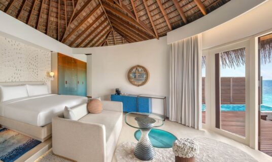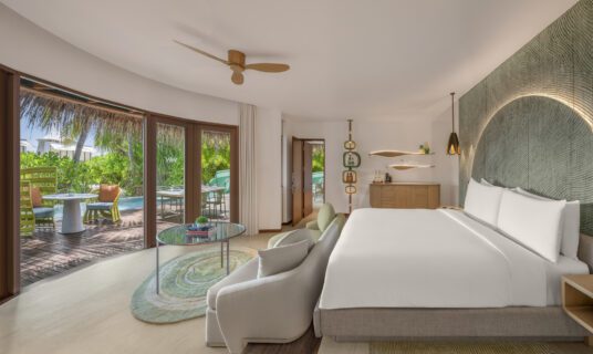 All villas offer contemporary design inspired by the island’s vibrant marine life, with private outdoor decks and plunge pools in most categories.