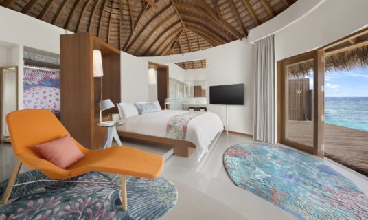 Perched on heart-shaped Fesdu Island in North Ari Atoll, W Maldives introduces a vibrant, style-driven escape into the Indian Ocean. With 77 reimagined beach and overwater villas designed around lagoon life, spontaneous moments and barefoot luxury await against a backdrop of white sands and clear waters. Dynamic dining concepts, signature AWAY Spa experiences and world-class snorkelling off the house reef create a playful yet refined setting for couples, groups and families alike.