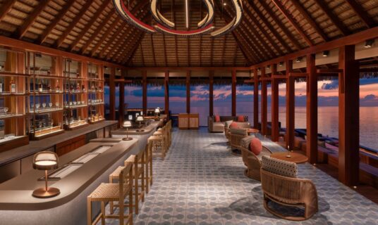 A stylish overwater bar offering inventive cocktails and light bites, perfect for sunset views over the lagoon.