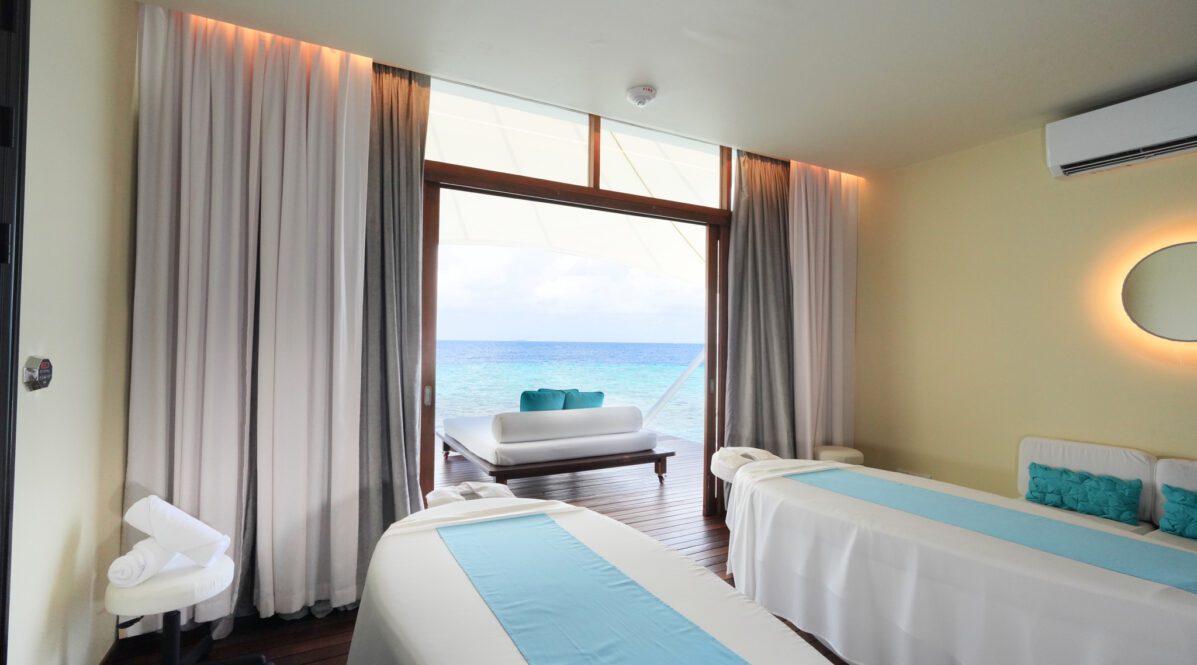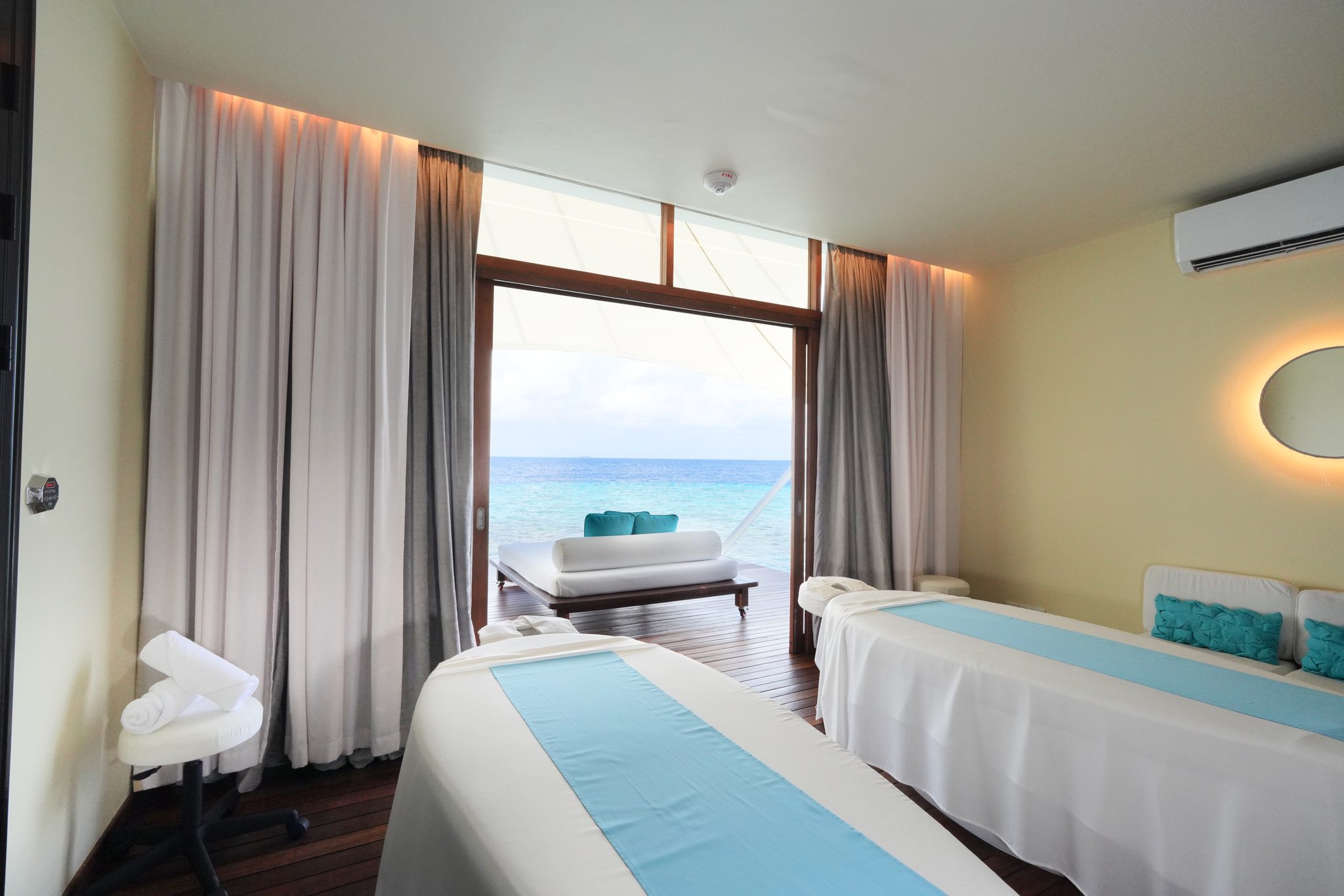 AWAY® Spa floats above the turquoise sea, offering a serene space for massages, facials and holistic treatments inspired by the island’s tropical surroundings. The resort also features a fully equipped fitness centre and access to yoga and wellness classes, allowing curated rejuvenation amid ocean panoramas.