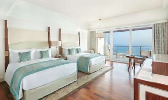 Offering panoramic views of the Arabian Gulf and the iconic Palm Jumeirah, room sizes start at 55 sqm, and boast a generous balcony. The elegantly designed & well-appointed rooms are bathed in natural light, and feature upscale amenities and comforts that will make your stay memorable. Rooms are suitable for up to four people, and interconnecting rooms are subject to availability.