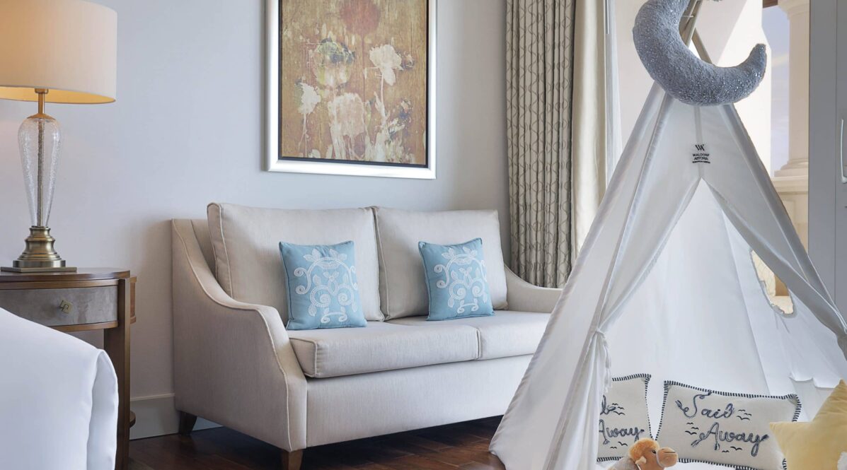 Superior rooms offer exquisitely furnished balconies and bright, airy interiors. Room sizes start at 55sqm with a Signature Waldorf Astoria king size bed, walk-in closet and a comfortable seating area. The stylish marble bathroom is fitted with a double vanity unit, a large bath and separate walk-in shower.