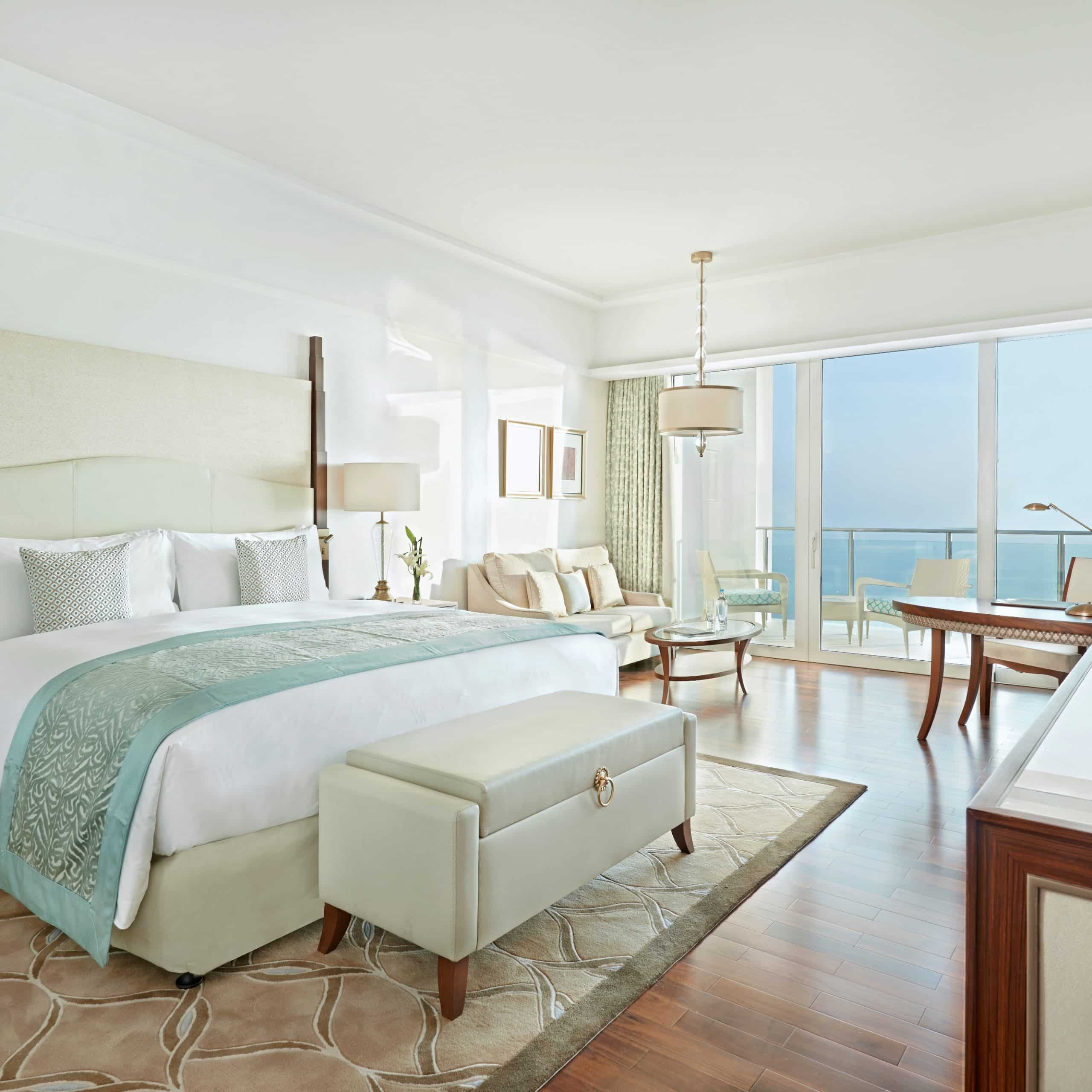 Offering panoramic views of the Arabian Gulf and the iconic Palm Jumeirah, room sizes start at 55 sqm, and boast a generous balcony. The elegantly designed & well-appointed rooms are bathed in natural light, and feature upscale amenities and comforts that will make your stay memorable. Rooms are suitable for up to three people, and interconnecting rooms are subject to availability.