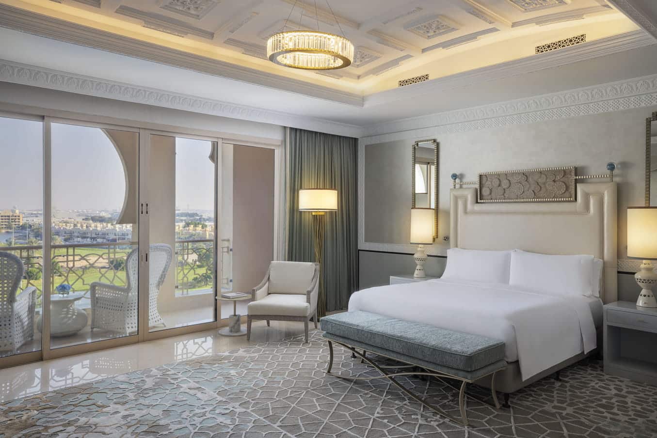 Waldorf Astoria Ras Al Khaimah offers an exquisite collection of rooms and suites, blending Arabian elegance with modern sophistication. Each spacious retreat features high ceilings, plush furnishings, and floor-to-ceiling windows that frame breathtaking views of the Arabian Gulf, Hajar Mountains, or lush golf course. Opulent marble bathrooms, deep soaking tubs, and premium amenities ensure ultimate relaxation, while state-of-the-art entertainment systems provide a seamless stay. Whether in a grand guest room or an extravagant suite with a private terrace, guests are enveloped in comfort and timeless luxury.