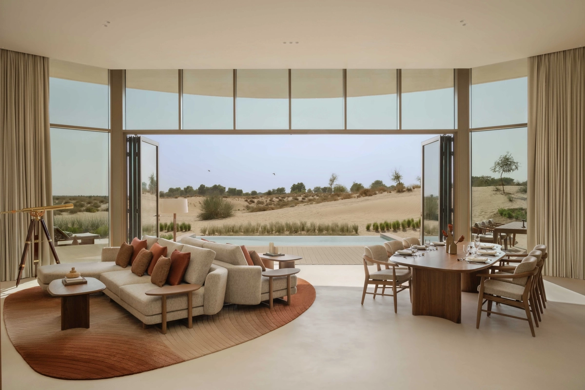 A romantic desert retreat offering traditional Arabian design, immersive cultural experiences, and a serene setting surrounded by rolling sand dunes.